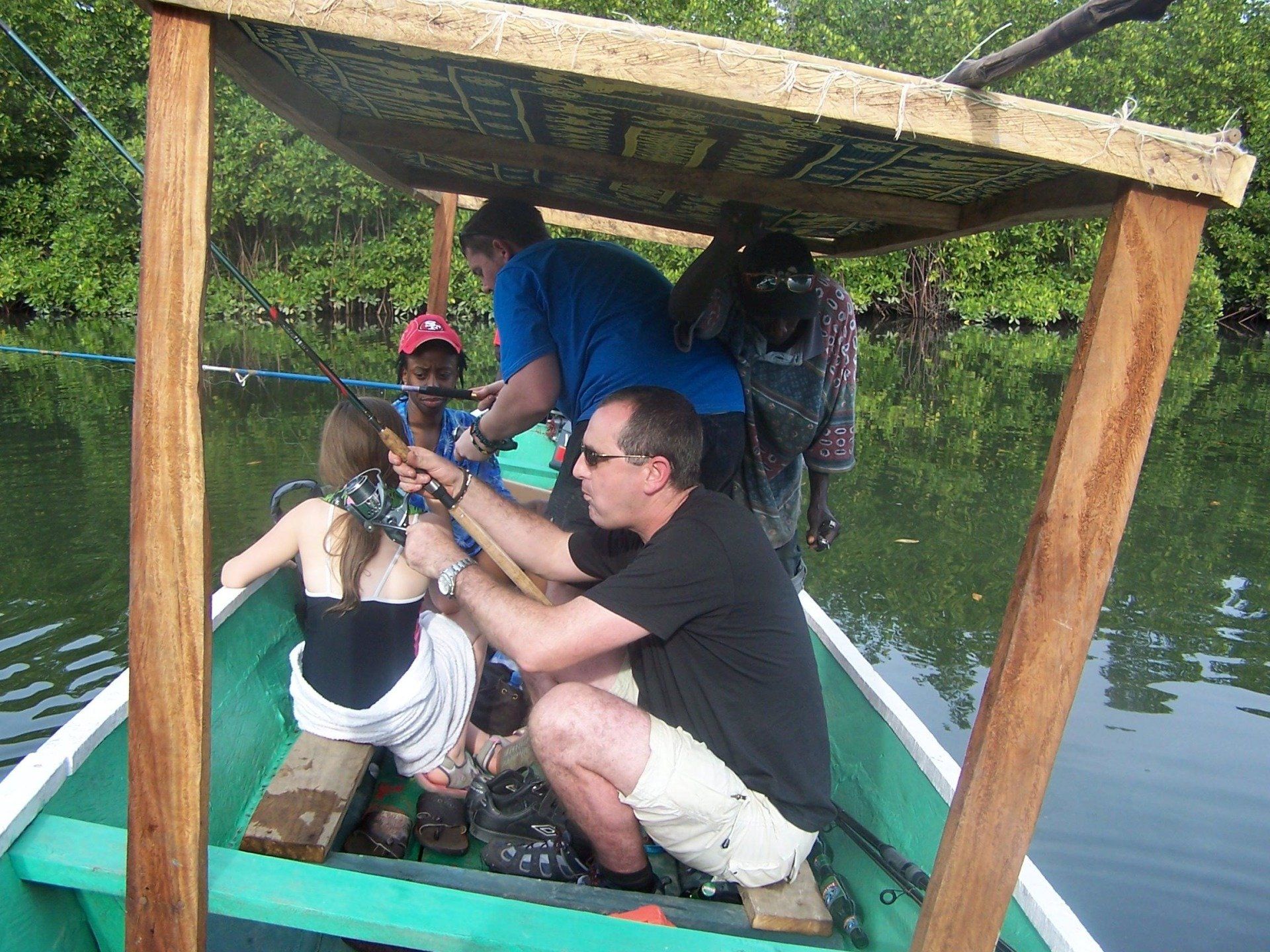 1/ leaving the lodge after breakfast, we take a 20min walk to the mangroves on the east of the Island. This is for the half day fishing trip for the full day we start from the beach in front of the lodge, board our boat